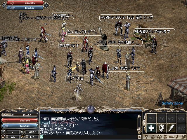 モンスターが出ないため安全。商店を開いている人にNPCに話しかける感覚で。